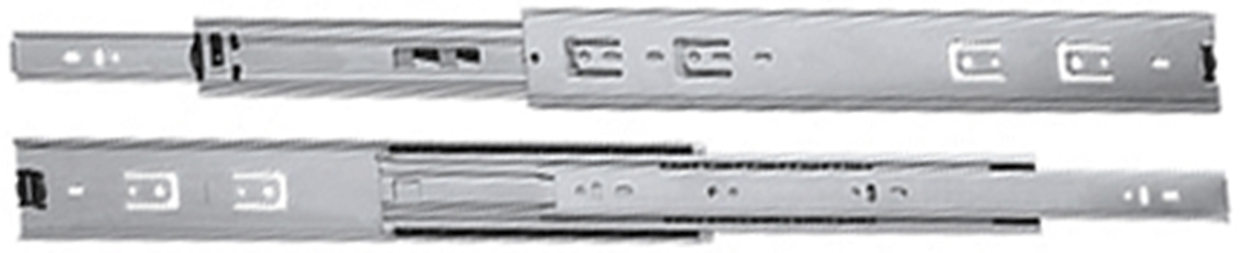 Rail mounting. 1/2" side spacing. Detent-in closed position. Hold-in detent. With over-travel. Load rating 150 lbs based on 18" Slides |