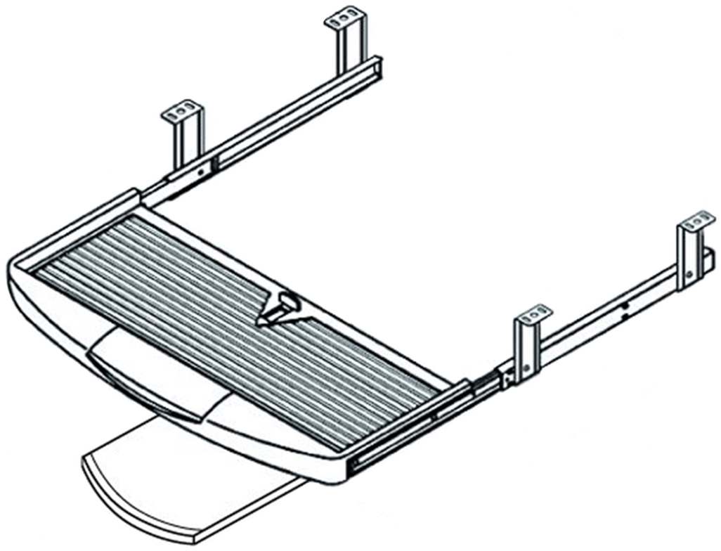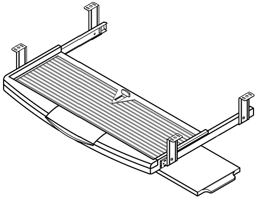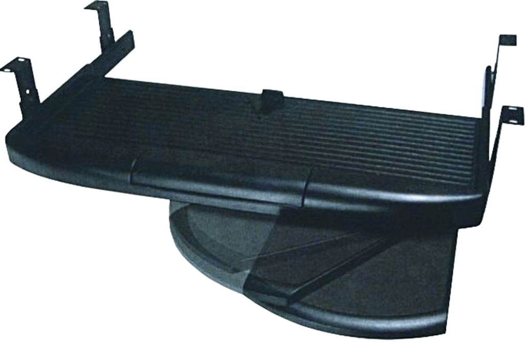 Adjustable keyboard with pull out mouse tray, height adjustable brackets and hold-in/hold-out detent. Accessory compartment in front. Keyboard tray dimensions: 630 mm W x 300 mm L Black color. Part Number: FU89230BK |