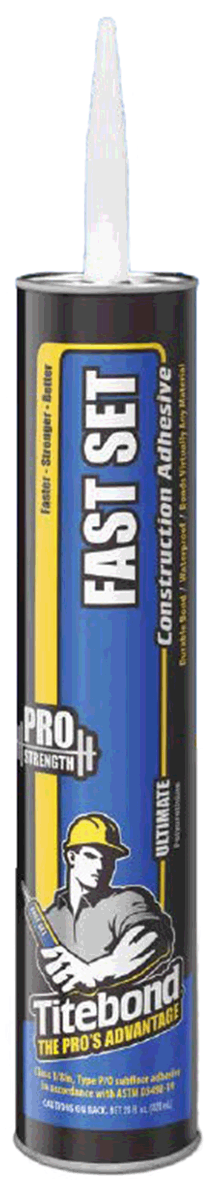 | Titebond® Fast Set Polyurethane Construction Adhesive is a one-component, advanced adhesive technology designed to build strength faster than other comparable products. It can be used for interior and exterior construction projects. 10oz 12 tubes per box. Part Number: 7921T4221 |