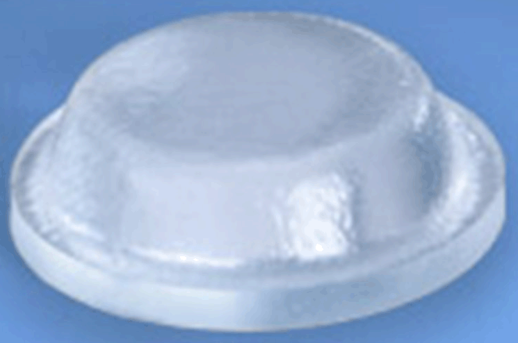 | 1/2" Cylindrical .50" wide x .14" thick. Stocked in clear. 200/sheet 5,000 per box. Part Number: 7129BS1SD |